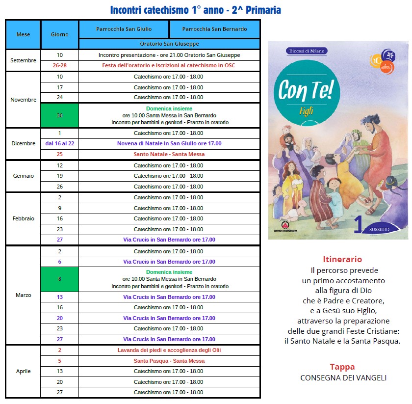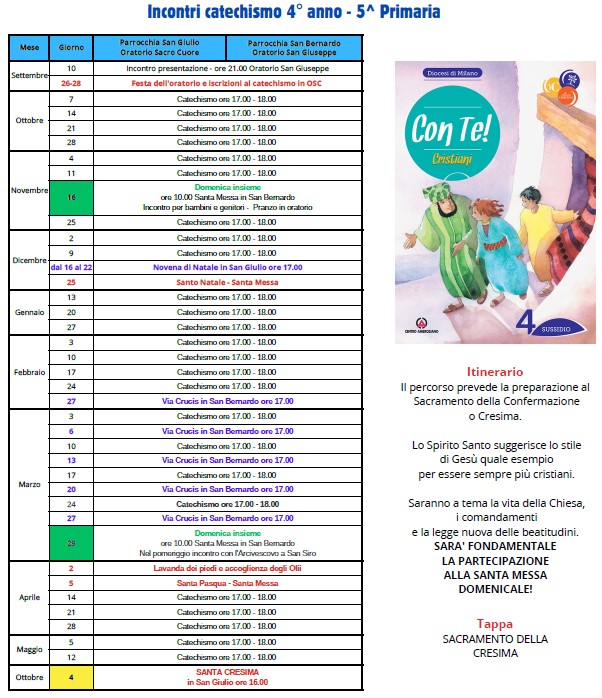 5a ELEMENTARE [2015] OSC e OSG: Martedì ore 17 1° incontro: 7 Ottobre 2025 CRESIMA |