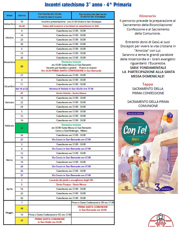 4a ELEMENTARE [2016] OSC e OSG: Giovedì ore 17 1° incontro: 9 Ottobre 2025 PRIMA CONFESSIONE PRIMA COMUNIONE |