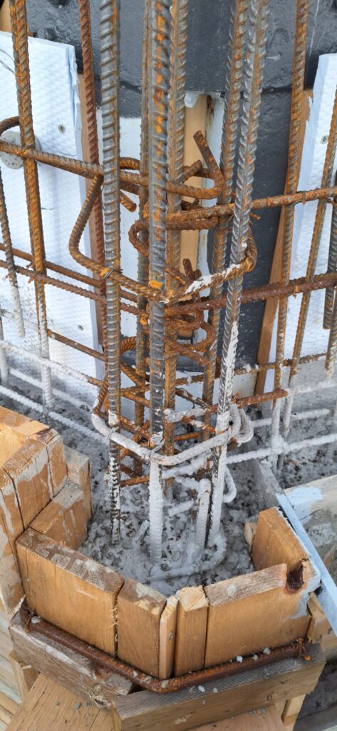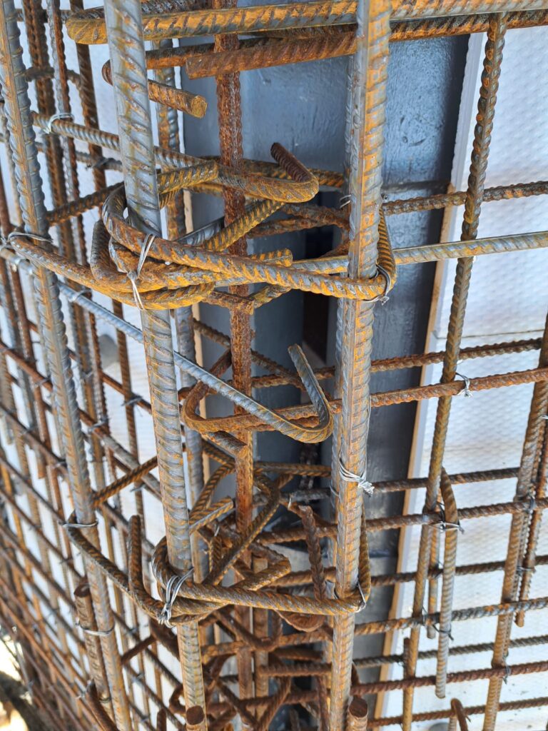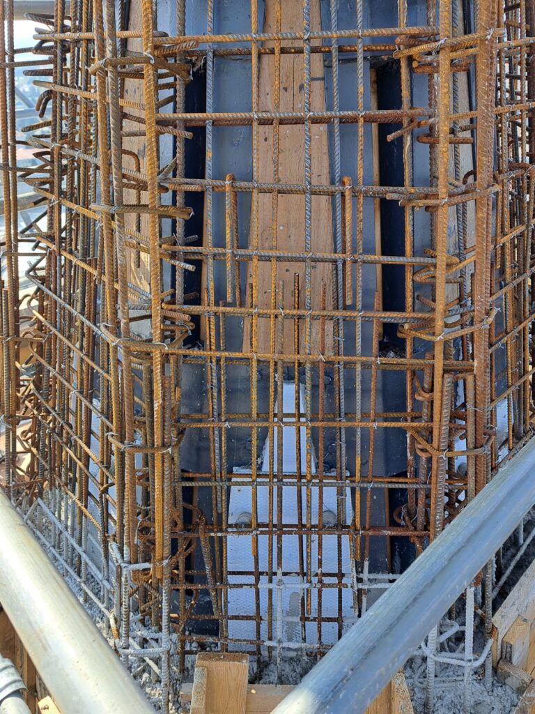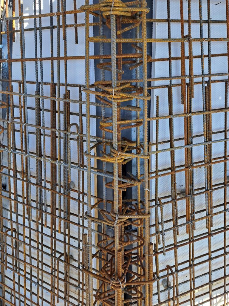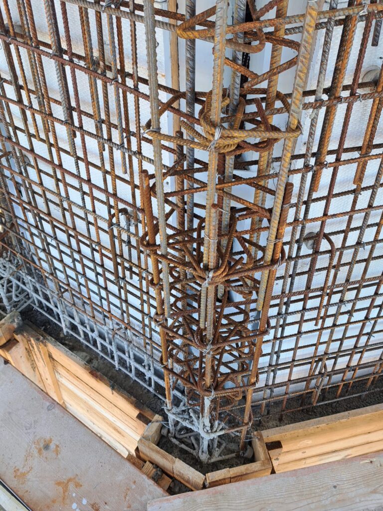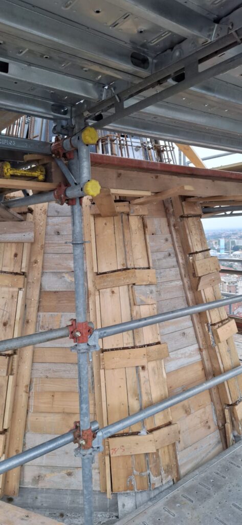 Terminata la parte più bassa dell’armatura, si stanno ora creando i casseri per la gettata delle pareti e dei costoloni.